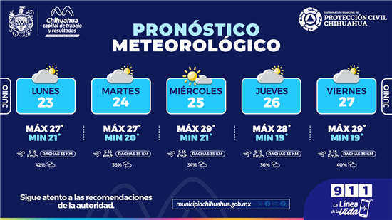 La Coordinación Municipal de Protección Civil, con base en datos del Sistema Meteorológico Nacional de CONAGUA, informa que para esta semana se esperan días mayormente nublados, lluvias moderadas y tormentas eléctricas, por lo que emiten recomendaciones para cuidar a las familias.