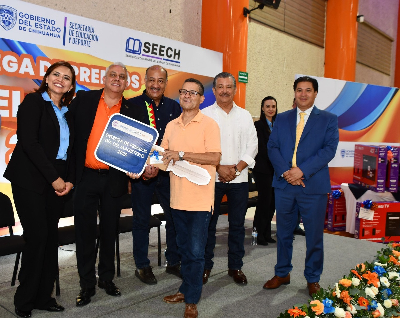 La Secretaría de Educación y Deporte, a través de Servicios Educativos del Estado de Chihuahua (SEECH), en coordinación con la Sección 8 del Sindicato Nacional de Trabajadores de la Educación (SNTE), entregó al personal educativo los premios del Sorteo Conmemorativo del Día del Magisterio 2025.