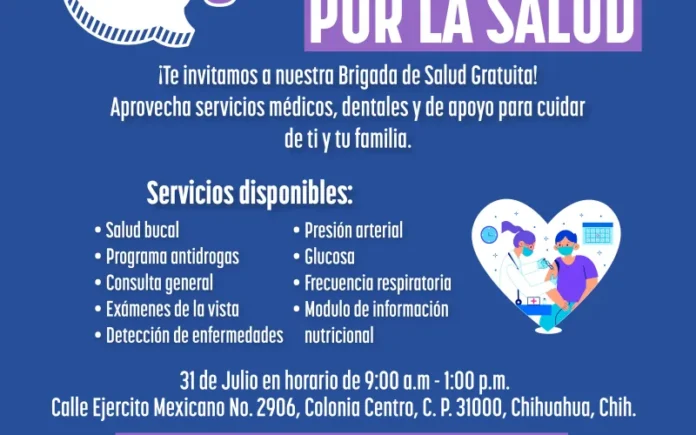 La Secretaría de Desarrollo Humano y Bien Común (SDHyBC) invita a la ciudadanía a aprovechar la Brigada de Salud gratuita, que se instalará este jueves en colaboración con MediChihuahua, con diversos servicios médicos.