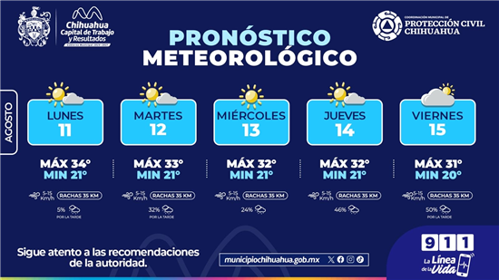 La Coordinación Municipal de Protección Civil exhorta a la población a mantenerse informada y tomar las debidas precauciones, especialmente durante los días con mayor probabilidad de lluvia, evitando cruzar arroyos o zonas con acumulación de agua, y reportando cualquier emergencia al 911.