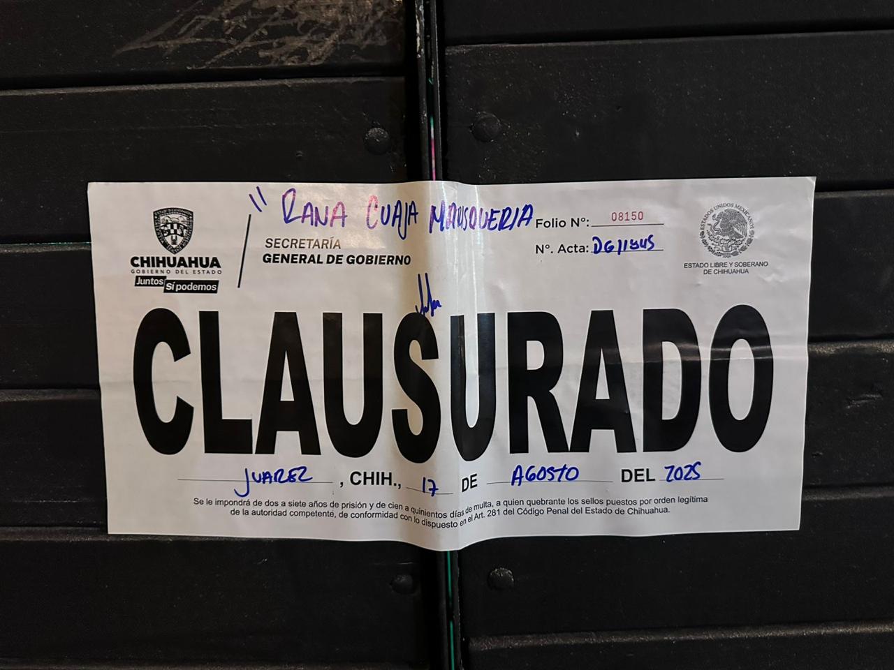 Dichas acciones dieron como resultado un total de 11 clausuras, de las cuales dos fueron en Aldama, dos en Delicias, una en Cuauhtémoc y seis en Ciudad Juárez.