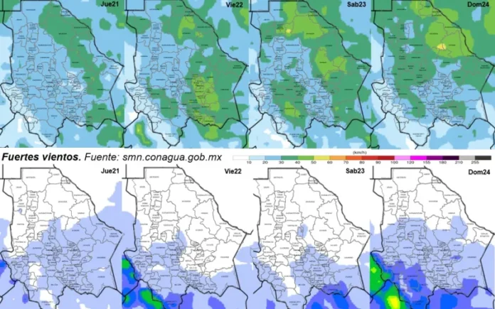Las ráfagas podrán alcanzar hasta los 45 km/h en Ahumada, Guadalupe, Aquiles Serdán, Rosales, Meoqui, Julimes, Delicias, Saucillo, Valle de Zaragoza, Parral, Santa Bárbara, Parral, Matamoros, Allende, López, Coronado, Jiménez, San Francisco de Conchos, Camargo y La Cruz.