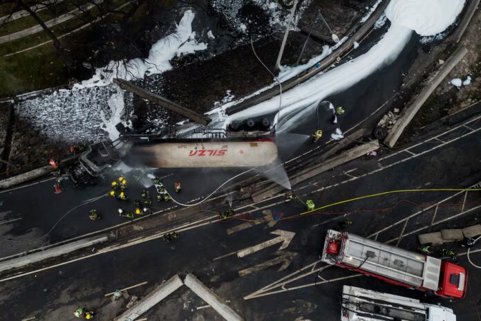 Una violenta explosión ocurrió esta tarde en una pipa de gas LP de aproximadamente 49 500 litros, que volcó bajo el Puente de la Concordia, en la alcaldía Iztapalapa. El incidente ocurrió cerca de las 14:20 horas, generando una devastadora onda expansiva e incendios en la zona.