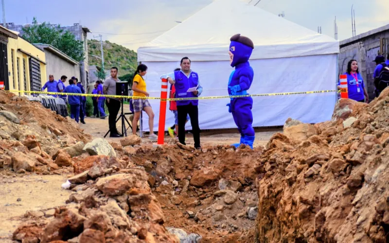 El director de la JMAS Chihuahua, Alan Falomir, mencionó que con esta obra se da cumplimiento de la instrucción de la gobernadora Maru Campos, de avanzar en la cobertura total en agua potable y drenaje en la capital del estado.