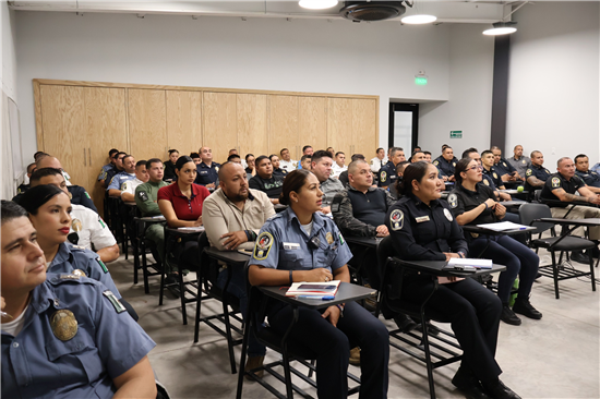 Policías de Pueblo Colorado acudieron a reforzar conocimientos de policías municipales de Chihuahua en temas de manejo de droga, especialmente el fentanilo, capacitación que se brinda desde el Instituto Superior de Seguridad Chihuahua (ISSCUU), gracias al convenio de hermanamiento que existe entre ambas ciudades.