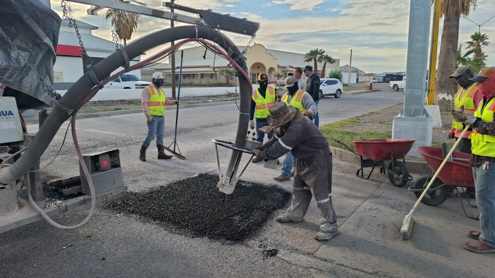 La Secretaría de Comunicaciones y Obras Públicas (SCOP) realiza estos trabajos de conservación con el uso del sistema de inyección “Jetpatcher”, tecnología que permite la reparación rápida, segura y duradera de este tipo de averías en calles y carreteras.