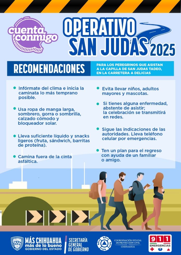 Como parte de la tradición, los caminantes recorren una distancia aproximada de 15 kilómetros sobre la carretera Chihuahua-Delicias, tramo en el cual se desplegará personal de diversas dependencias para una vigilancia permanente.