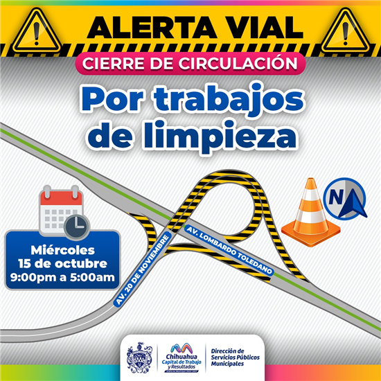 Con el objetivo de mantener una buena imagen urbana, el Gobierno Municipal, a través de la Dirección de Servicios Públicos Municipales, interrumpirá el tránsito vehicular en los accesos del periférico Lombardo Toledano desde la avenida 20 de noviembre el próximo 15 de octubre en un horario de 9:00 de la noche a las 5:00 de la mañana.