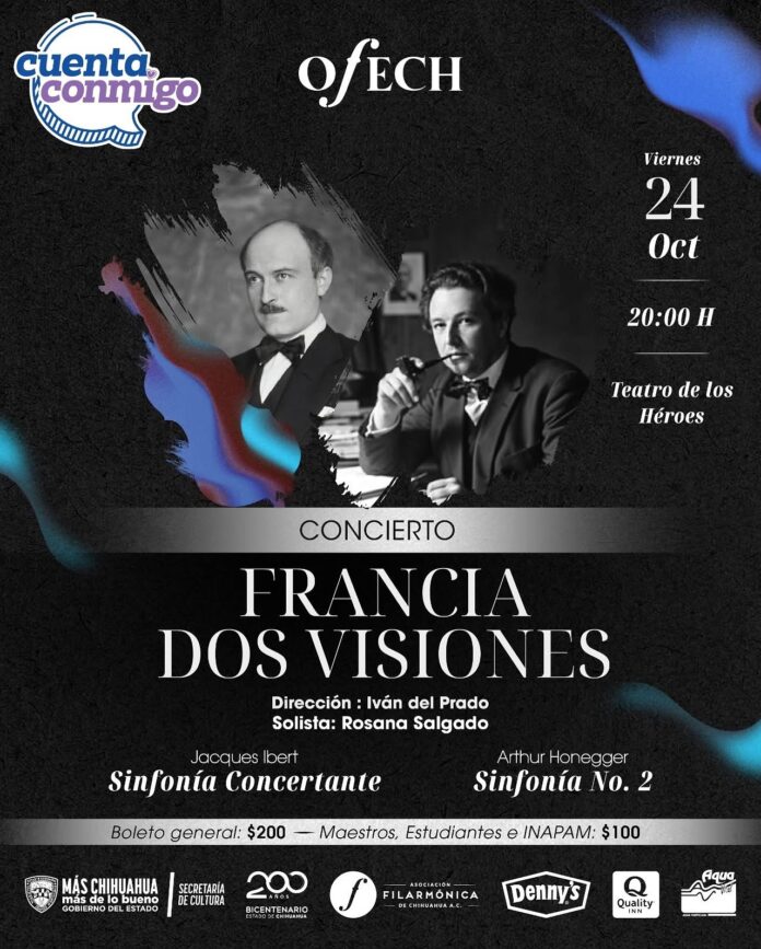 La Secretaría de Cultura invita a la ciudadanía a disfrutar de un viaje musical a cargo de la Orquesta Filarmónica del Estado de Chihuahua (Ofech), con el concierto “Francia, Dos Visiones” y la tradicional charla previa al espectáculo.