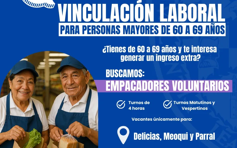 De igual manera, se solicita la participación de adultos mayores de 60 a 69 años interesados en integrarse como empacadores voluntarios en supermercados de los municipios de Delicias, Meoqui y Parral.