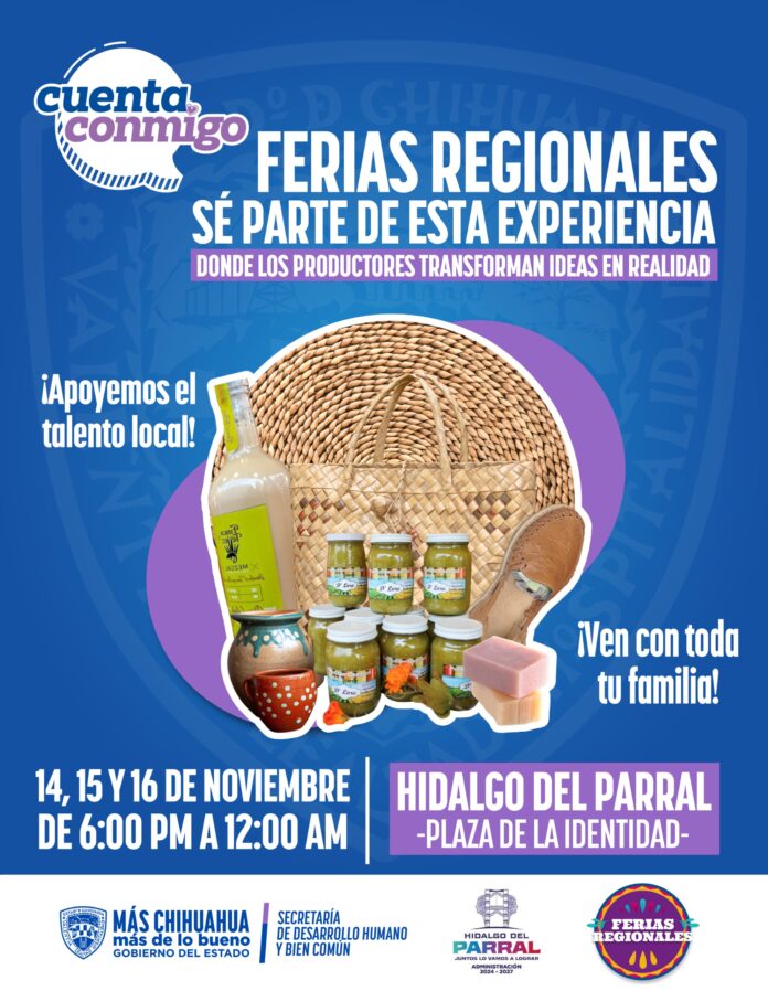 El Gobierno del Estado, a través de la Secretaría de Desarrollo Humano y Bien Común (SDHyBC), invita a la ciudadanía a disfrutar de la Feria de Productores Regionales en el municipio de Parral, que contará con la participación de más de 80 expositores locales.