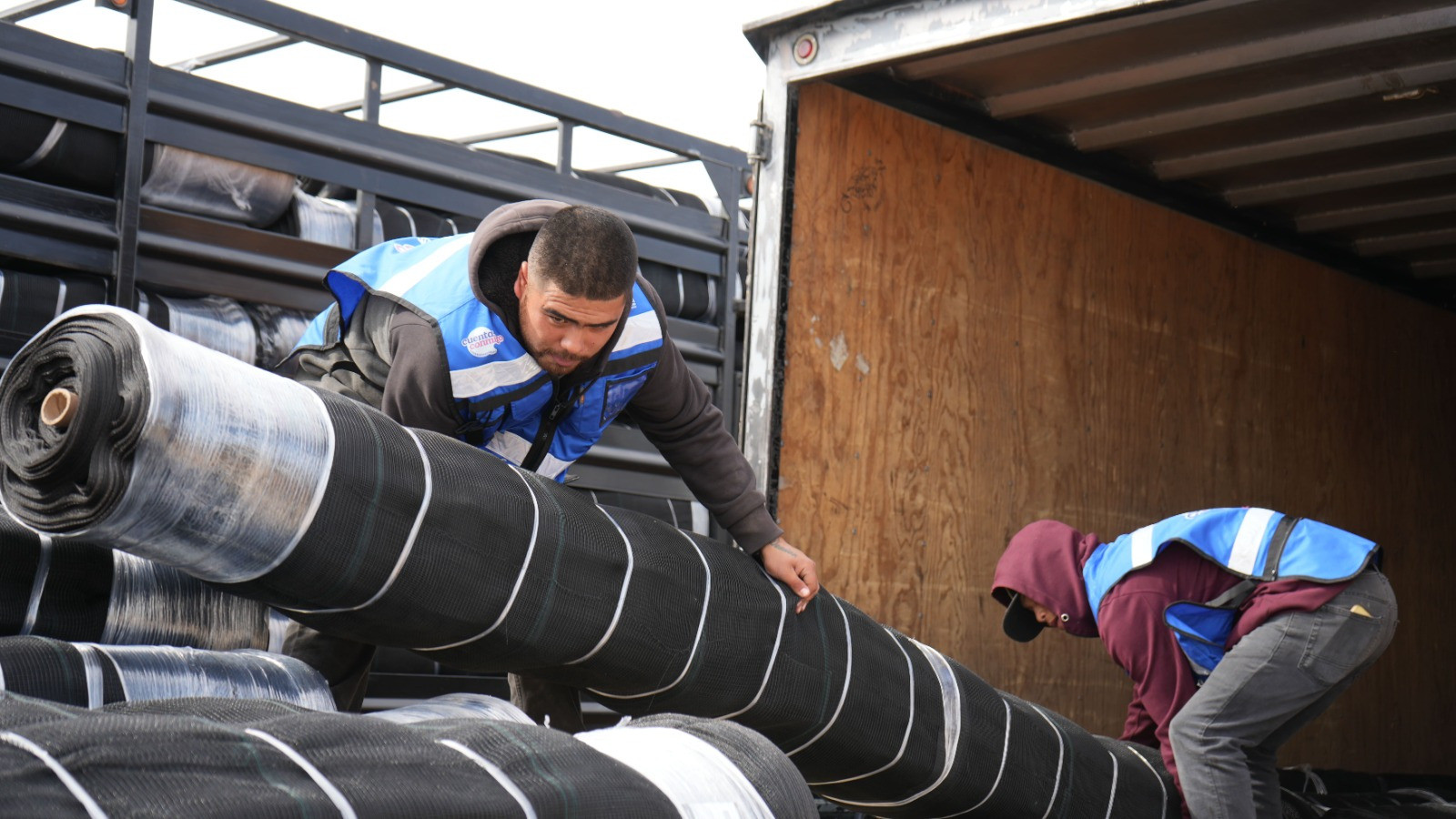 En coordinación con la Unión de Fruticultores (Unifrut) se distribuyeron 14 mallas de 740 metros lineales cada una, que permitirán resguardar los cultivos de manzana ante los riesgos de heladas, granizadas y otras inclemencias del clima propias de la temporada.