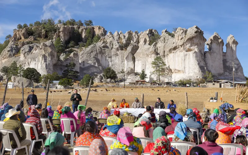 El Gobierno del Estado, a través de la Secretaría de Pueblos y Comunidades Indígenas (SPyCI), entregó 5 toneladas de maíz y frijol en la comunidad de Totorichi, municipio de Guachochi, en apoyo a 250 familias indígenas.