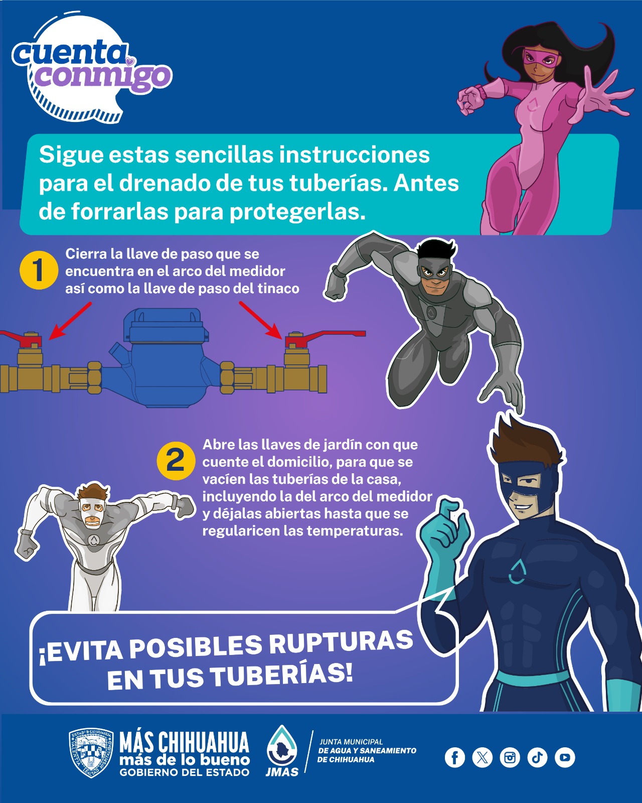 Ante el pronóstico de bajas temperaturas, la Junta Municipal de Agua y Saneamiento (JMAS) de Chihuahua emitió recomendaciones para proteger las tuberías y prevenir daños por congelamiento.