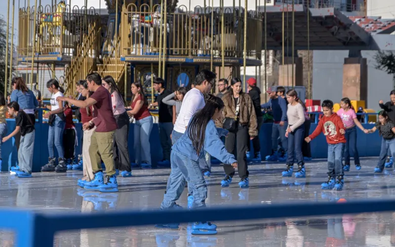 Asimismo, se mantiene disponible la pista de hielo, con un costo de 130 pesos por persona, la cual cuenta con una capacidad hasta de 300 usuarios por hora, convirtiéndose en una experiencia segura y divertida para toda la familia.
