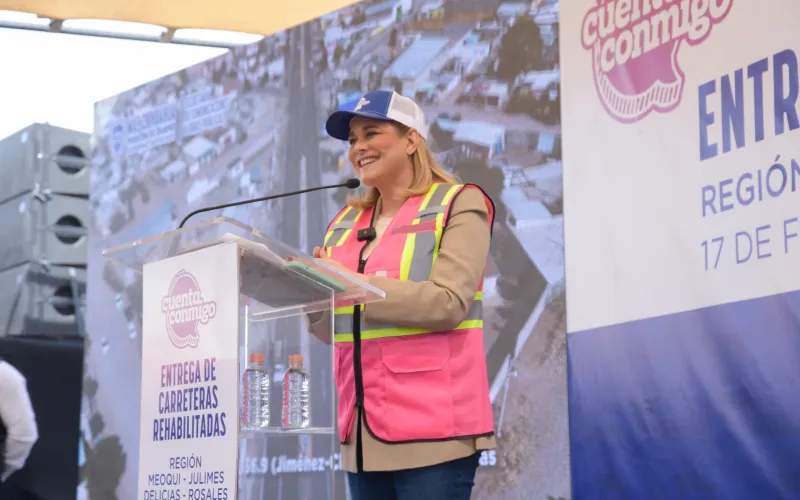 La gobernadora Maru Campos entregó la obra de rehabilitación de la carretera Meoqui-Julimes que beneficiará a más de 50 mil personas, y que, en conjunto con la reconstrucción de la vía a Rosales y el acceso al seccional de Lázaro Cárdenas, representa una inversión superior a los 100 millones de pesos (mdp).