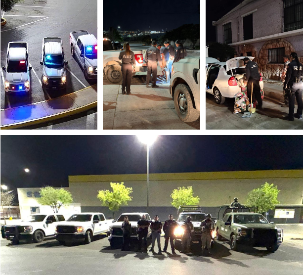 Mediante una célula integrada por elementos del Ministerio Público, de la Agencia Estatal de Investigación (AEI), Secretaría de Seguridad Pública del Estado (SSPE), Dirección de Seguridad Pública Municipal (DSPM), y Ejército Mexicano, se recorrieron las calles de los distritos Villa, Morelos y Zapata.
