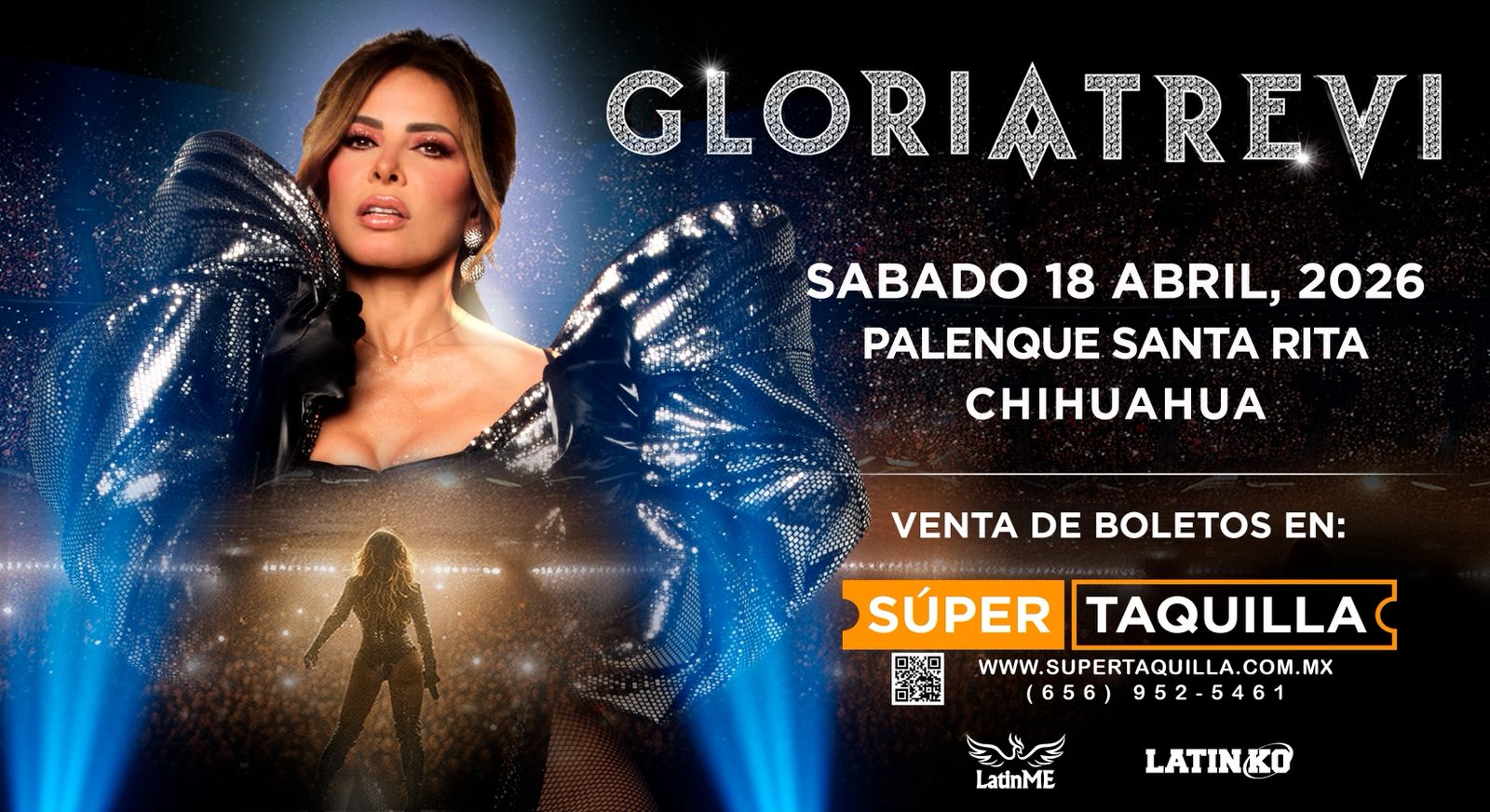 La cantante mexicana Gloria Trevi confirmó su regreso a los escenarios de Chihuahua con un concierto programado para el sábado 18 de abril de 2026 en el Palenque de Santa Rita, uno de los recintos más importantes para espectáculos en la capital del estado.