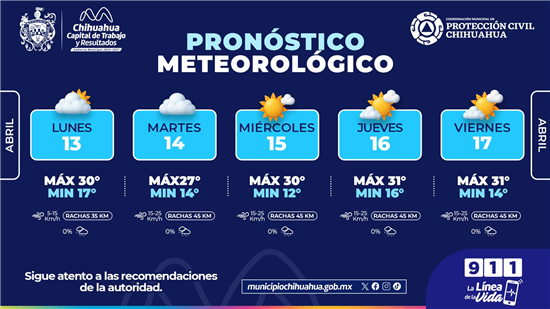 La Coordinación Municipal de Protección Civil recomienda a la población tomar precauciones ante las rachas de viento, asegurar objetos en exteriores, evitar situaciones de riesgo y mantenerse informados sobre las condiciones del clima.