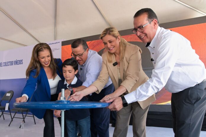 La gobernadora Maru Campos encabezó en Ciudad Juárez la inauguración del Colector Viñedos en beneficio de más de 441 mil habitantes, en seguimiento a la estrategia de su administración de mejorar la infraestructura sanitaria y las redes de alcantarillado en zonas urbanas.